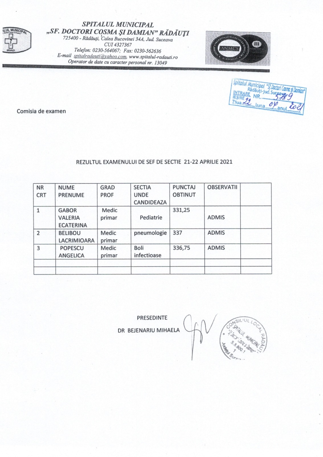 Documente ale concursurilor desfășurate în 2015 - 2021